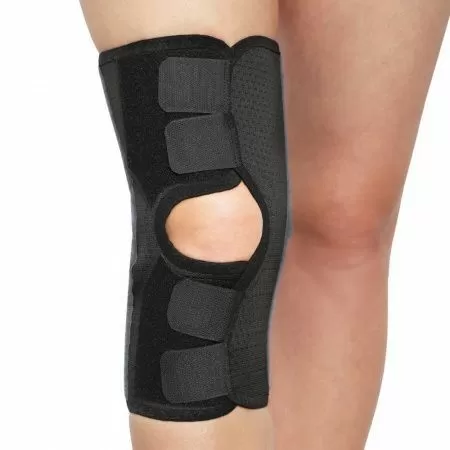 - Бандаж выполнен из перфорированного материала, имеет усиленные полукольца для коленной чашечки, обработанные мягким материалом