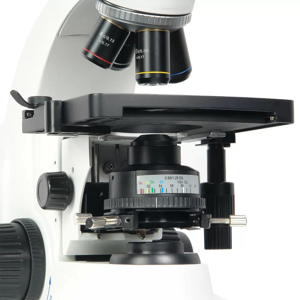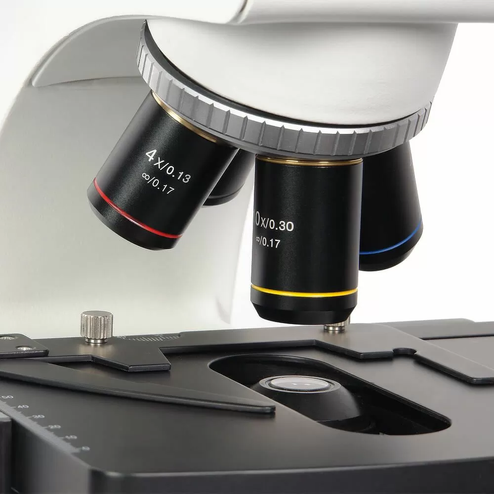 - В комплекте микроскопа объективы с коррекцией на бесконечность 4x/0.13, 10x/0.30, 40x/0.70 и иммерсионный объектив 100x/1.25 oil. По дополнительному заказу могут быть приобретены объективы 20x/0.45 и 60х/0.80. Высокое оптическое качество объективов обеспечивает информативность и комфорт при исследованиях и отличное качество записываемых изображений. Объективы стандартизованы по DIN и имеют парфокальную высоту 45 мм.