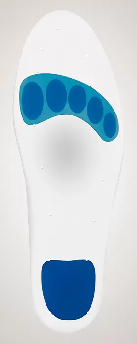 - Участки силикона с низкой плотностью значительно разгружают стопу в пяточной области и в области проекции головок плюсневых костей.
